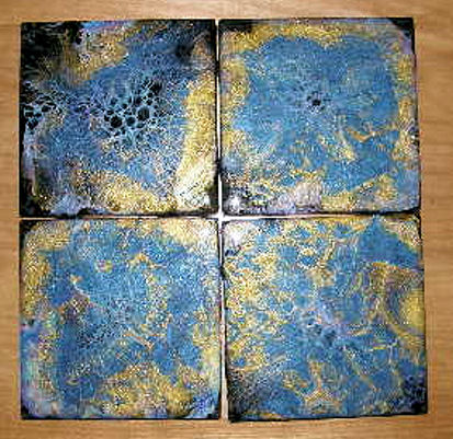 4set Blue Black Gold Coaster set of 4. Hand painted and coated with a high temperature resin. No worries with hot mugs!