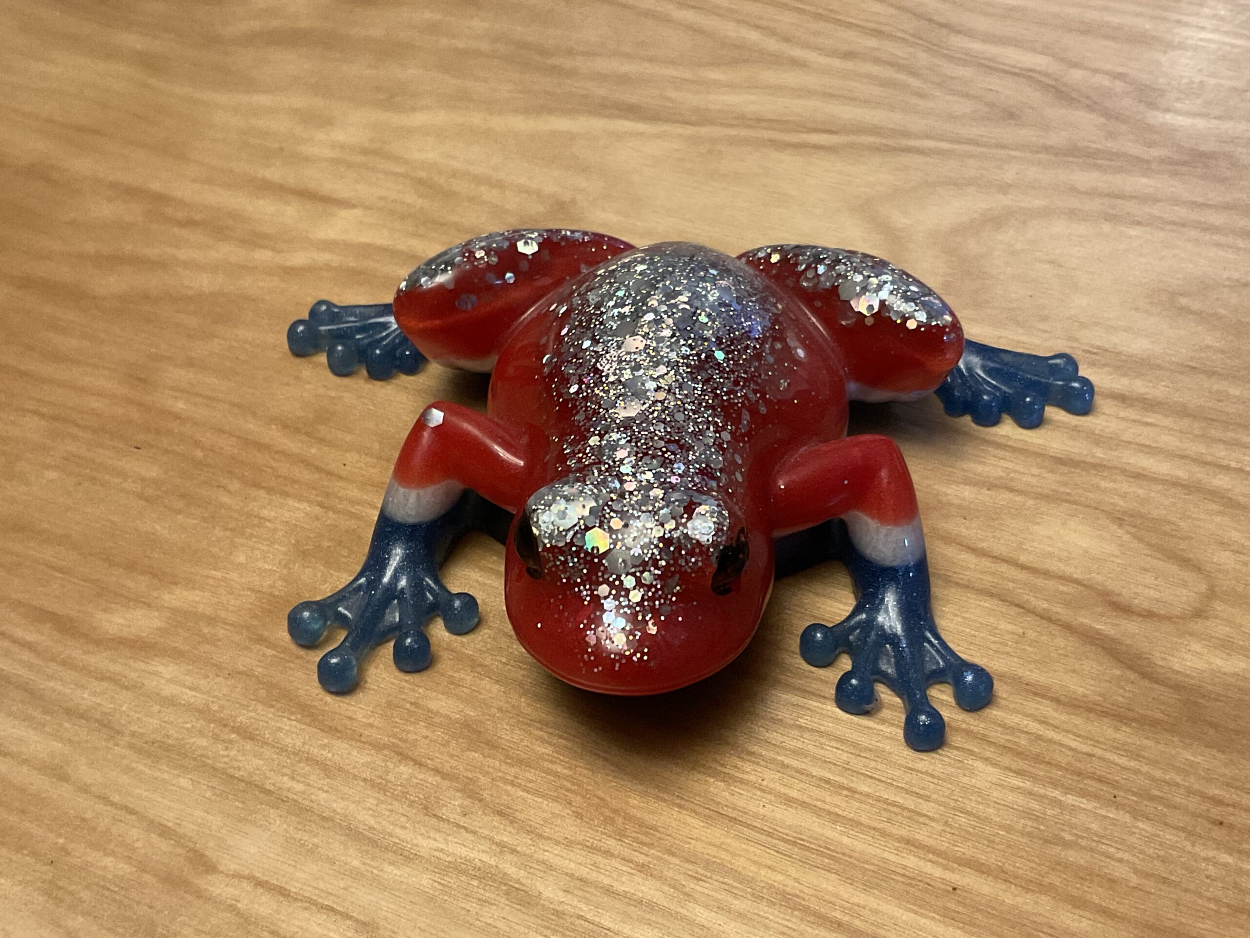 Blue-white-red-mica resin Frog