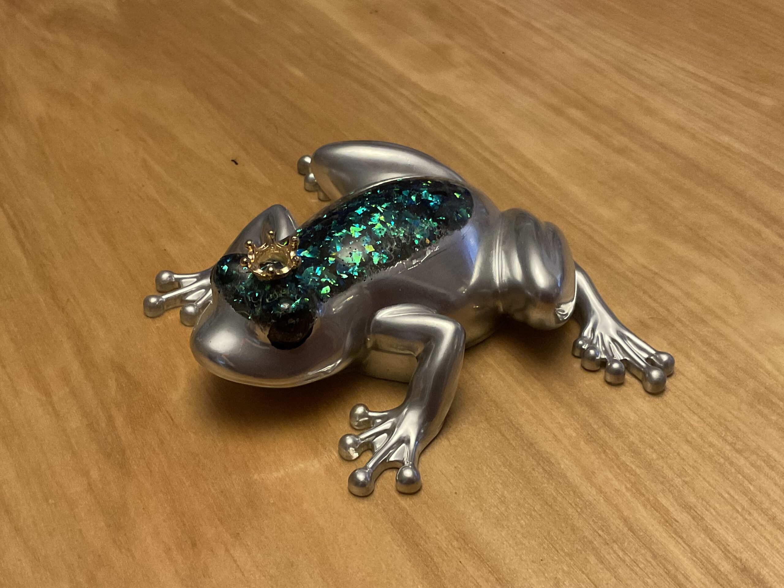 Silver-green-mica-crown resin Frog