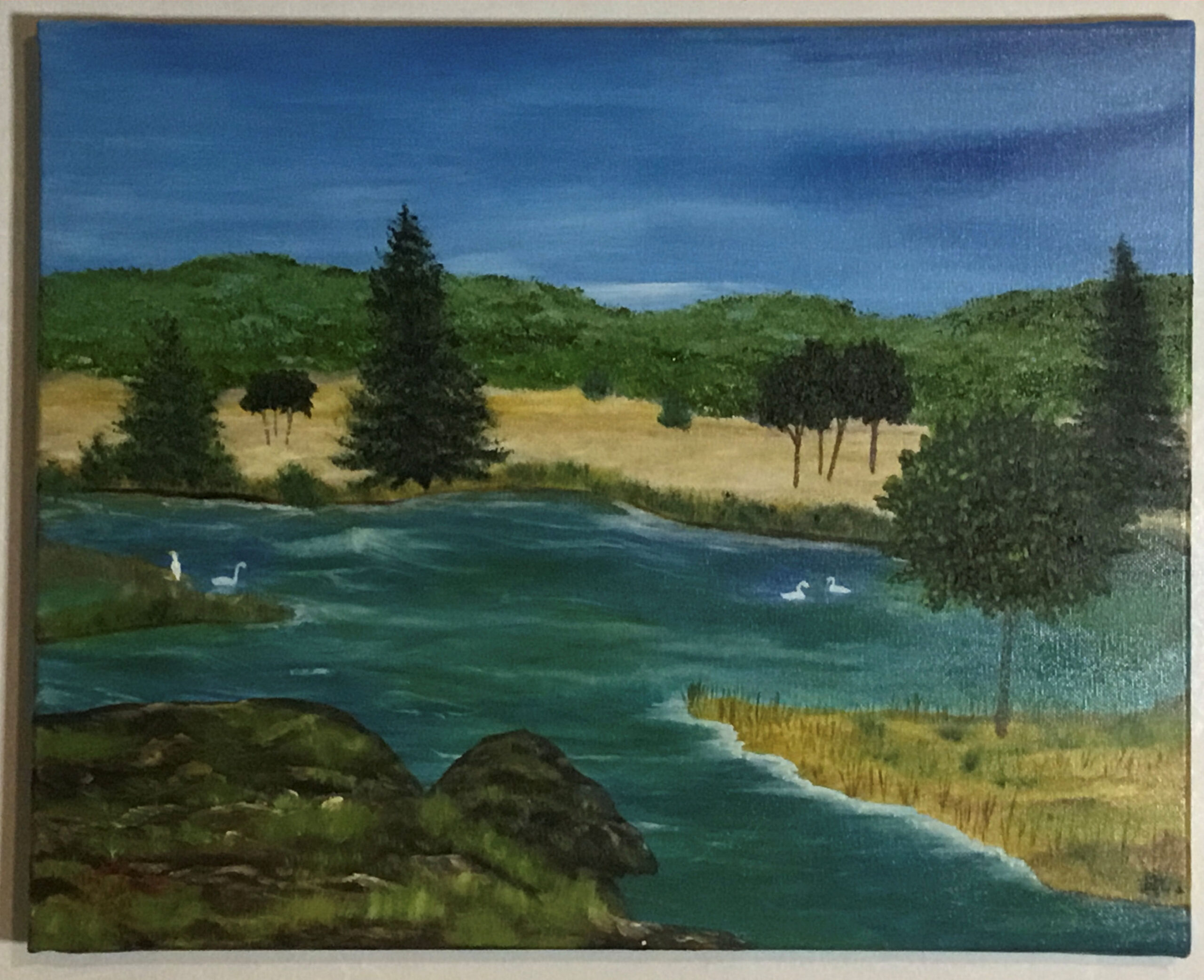 A gentle river winds through sunlit meadows, surrounded by whispering pines and golden grasses. ‘Whispering Pines’ offers a warm, pastoral retreat for those drawn to peaceful wilderness and simple beauty.
